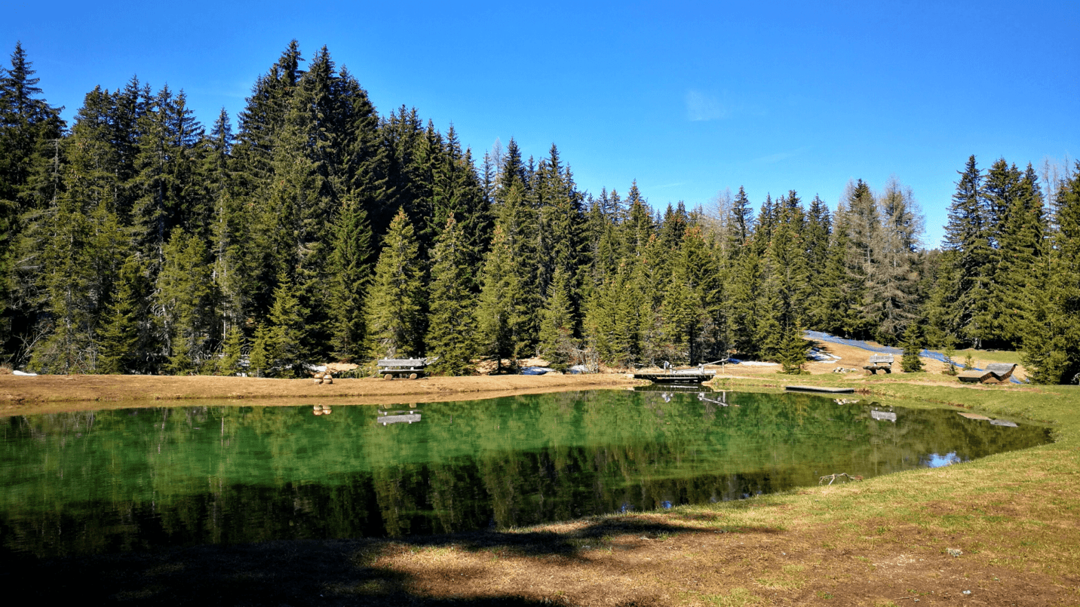 In poco più di un’ora di semplice camminata, è anche possibile completare il giro ad anello del lago per godere appieno di ogni sua angolazione. Noi abbiamo deciso di percorrerlo da destra, verso sinistra in quanto, su quest’ultima parte, era ancora presente una discreta quantità di neve.