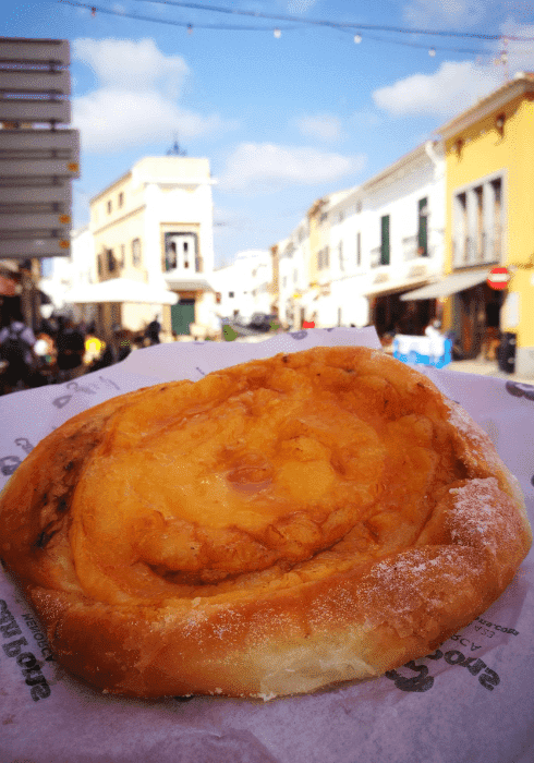 Sebbene sia uno dei dolci tipici delle Baleari, quella preparata a Minorca è diversa dalla sorella mallorquina. É chiamata anche coca bamba, o coca de Sant Joan, perchè è d’obbligo prepararla e mangiarla durante i giorni di festa di Sant Joan. Da provare anche con il cioccolato caldo.