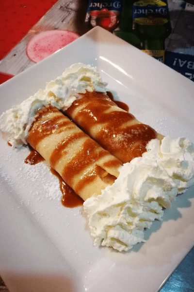 Compreso del bere e di un dolce squisito, due crepes con mele cannella e topping al caramello, la spesa è stata poco più di €25.00 in due persone. Accogliente, economico e di qualità!