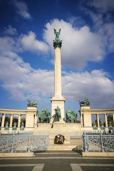 L’Ungheria esprime l’orgoglio di mille anni di nazione in questa ampia piazza con monumenti agli eroi che ne hanno fatto la storia.