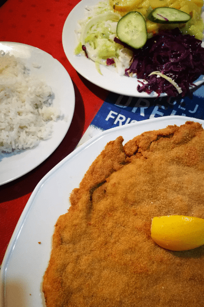 La prima sera trascorsa a Budapest ho cenato al Becsiszelet Vendeglo, un piccolo ristorantino poco distante dal B&B Hotel Budapest City. Qui abbiamo ordinato dell’ottimo goulash, una porzione di patate rosti, una porzione di riso in bianco e una schnitzel (la cotoletta impanata) davvero molto buona accompagnata da un’insalata mista.