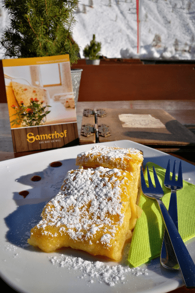 Kaiserschmarrn, questo dolce è un impasto di uova, zucchero, farina, latte e burro che viene cotto in padella e servito con marmellata di mirtilli o prugne stufate.