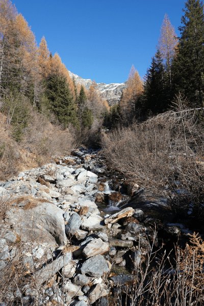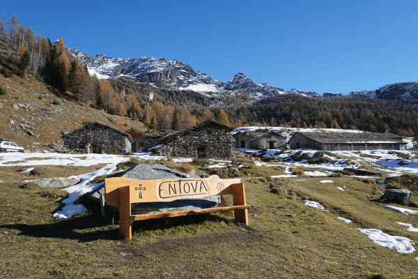 Dopo una decina di minuti, troverai le prime indicazioni verso l’Alpe Entova, a un’ora di cammino. Il sentiero prosegue in costante salita, comoda e mai troppo ripida. Oltrepasserai alcuni piccoli torrenti e camminerai per la maggior parte del tempo tra gli alberi, pini e larici maggiormente.