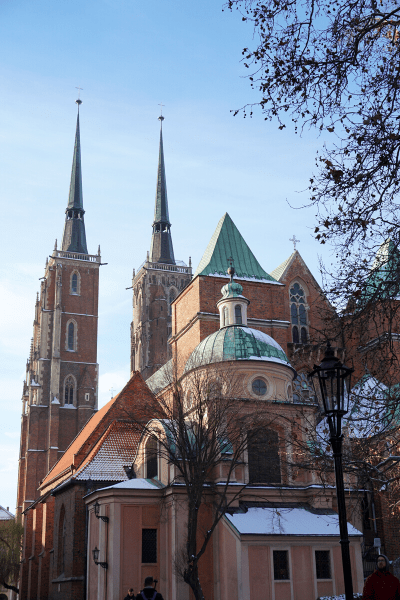 Costruita a partire dall’anno 1000, risulta essere uno dei più belli esempi gotici in tutta la Polonia. Si presenta con due alti campanili, mentre l’interno è diviso in tre lunghe navate. La Cattedrale si trova nell’isola Ostrów Tumski, la parte più antica, pittoresca e tranquilla di Breslavia. Questa parte conserva ancora tutto il fascino e l’aspetto dell’antico borgo medioevale, con strade ciottolate e un’atmosfera incantata.