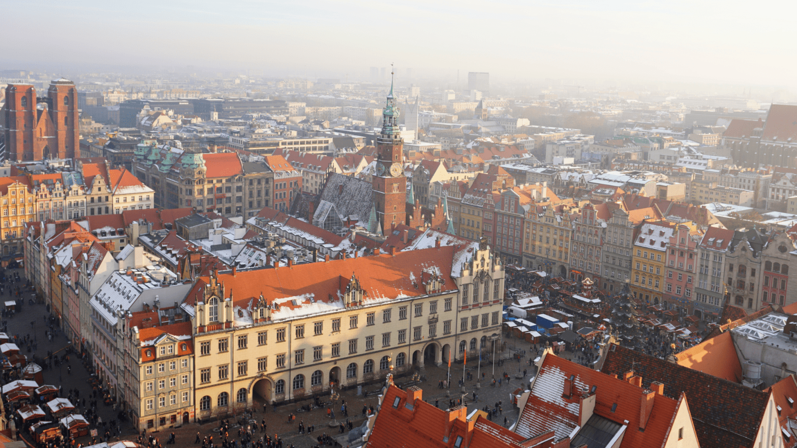 Case in mattoni, facciate colorate e tetti rossi. Ecco il centro storico di Breslavia, un vero gioiello architettonico ricostruito dopo i bombardamenti della Seconda Guerra Mondiale.