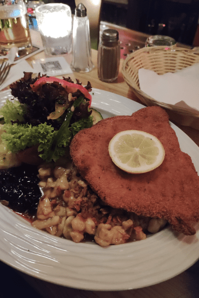 Per terminare la prima giornata a Berlino, ho deciso di cenare al Gaststätte Budike. Questo grazioso ed accogliente ristorante, in tipico stile tedesco, offre un menù con cibo della tradizione locale e buonissime birre d’accompagnamento. Wiener Schnitzel (la classica cotoletta) e maxi polpetta di carne, entrambe servite con patate arrostite, davvero deliziose!