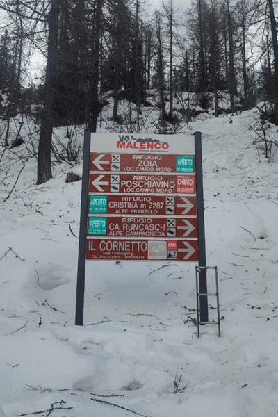 Dopo una sosta rigenerativa al Rifugio Cristina, ti consiglio di proseguire chiudendo il giro con un anello. Segui le indicazioni verso il Rifugio Ca Runcasch, situato nella Piana di Campagneda tra la magnifica piramide del Pizzo Scalino e la Cima Sasso Moro. Questo tratta è quasi totalmente in discesa e richiede circa 30 minuti di cammino. Una volta superato il Rifugio, segui le indicazioni verso Frascia per tornare all’automobile.