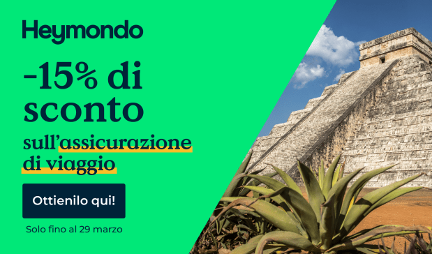 Attiva la tua assicurazione viaggio Heymondo e risparmia il 15% in pochi click.